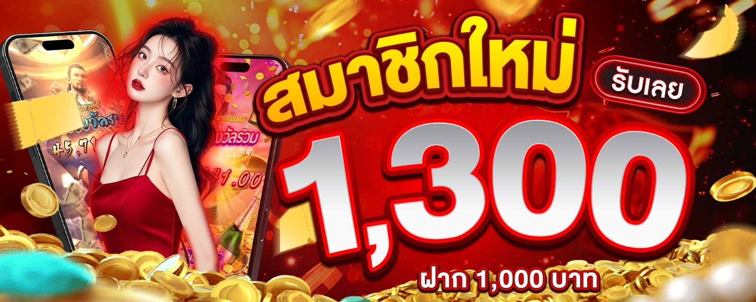 สมัครใหม่วันนี้ รับสิทธิ์พิเศษ เติม 1,000 รับ 1,300